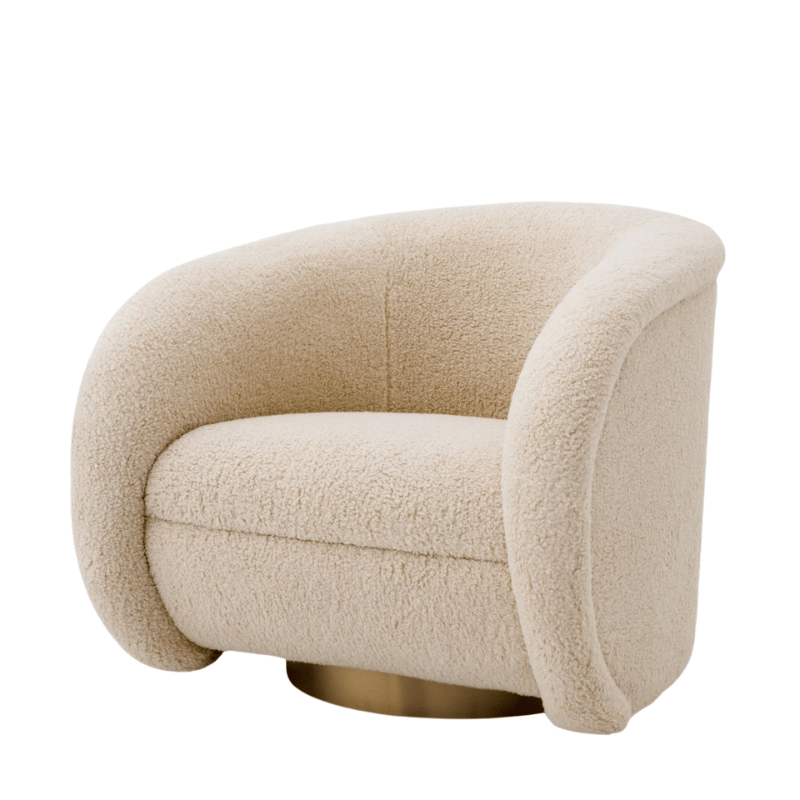 The Cristo Rotative Armchair in Brisbane cream is a perfect blend of modern elegance and functional comfort. Its beautifully rounded shape embraces you in softness, while the 360-degree swivel base adds a playful yet practical touch—ideal for dynamic living spaces or stylish corners.