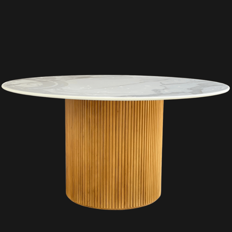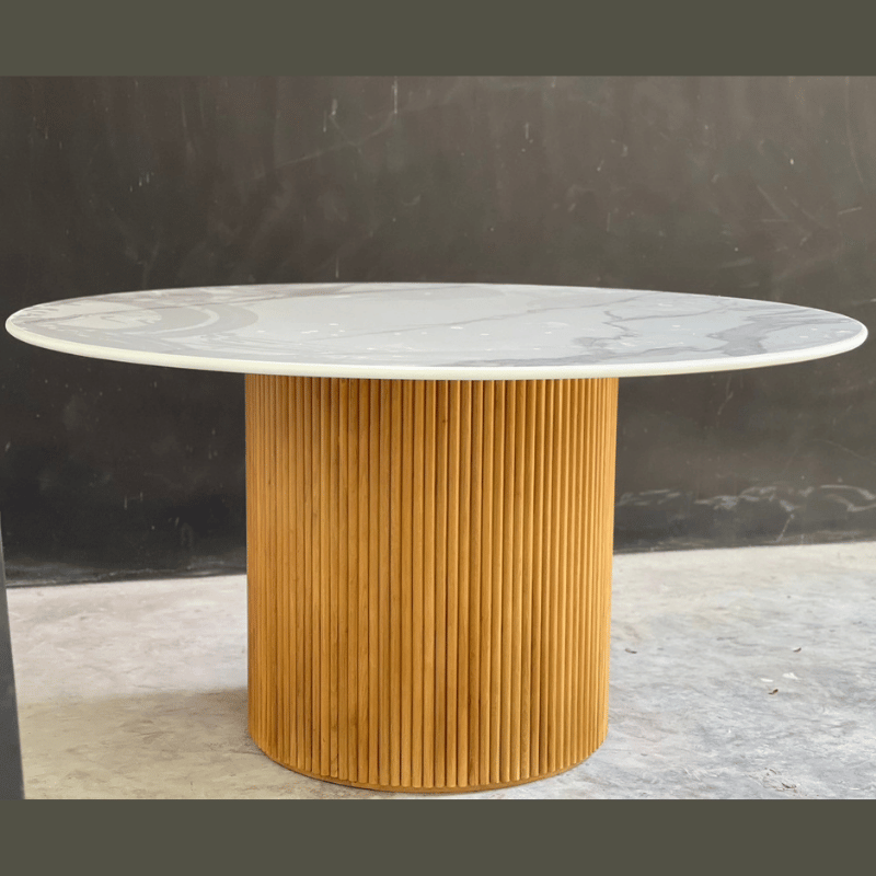 The Dining Table Circle is a sophisticated blend of natural elegance and refined design. Featuring a beautiful round marble top set on a central wooden leg, this table embodies harmony and warmth, creating a welcoming ambiance for any dining space. The combination of the smooth marble platter and rich wood grain brings a balanced contrast that is both modern and timeless. With its sleek lines and inviting feel, the Circle table is perfect for gatherings, adding a touch of style and comfort to every meal shared around it.