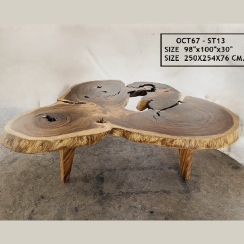 The Round Table Fallen (Unique Piece) is a magnificent 254 cm diameter table crafted from solid acacia wood. Its distinctive shape, disformed by the natural contours of the tree, makes it a truly unique and captivating piece. Full of charm, this table embraces the organic beauty of nature, bringing warmth and elegance to any dining space. A rare and artistic creation, the Fallen table stands as both a functional surface and a statement piece, perfect for those seeking something extraordinary.